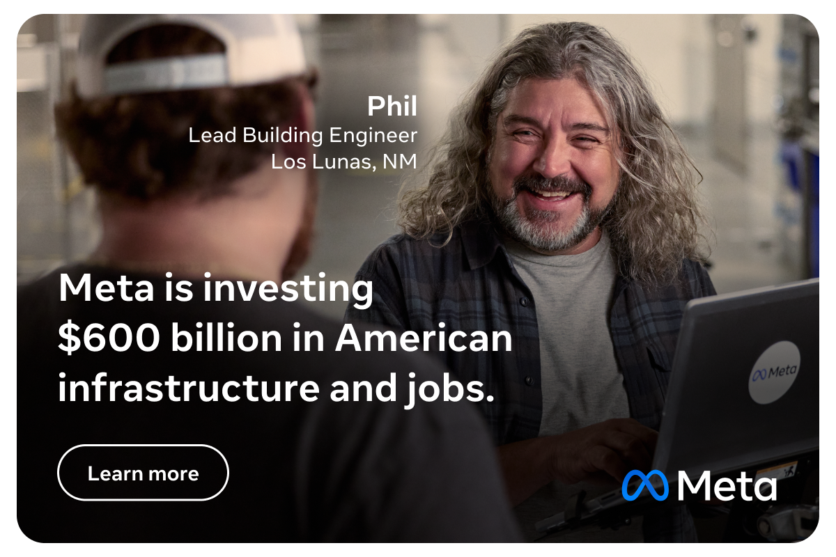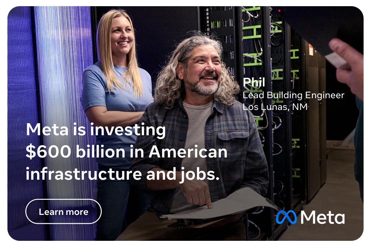 Meta is investing $600 billion in American infrastructure and jobs, creating opportunities in communities nationwide.