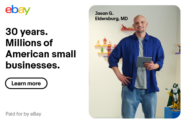 30 years ago, eBay revolutionized commerce with a simple idea: you can trust someone on the other side of a screen. Since then, we’ve powered millions of entrepreneurs, sparked digital innovation and built a global marketplace rooted in trust. Today, eBay continues to lead through AI, sustainability and tools that help small businesses thrive. See how we’re making small business success happen at ebaymainstreet.com/smallbiz.